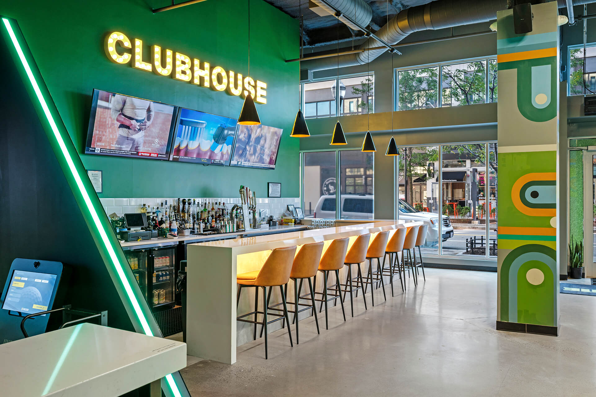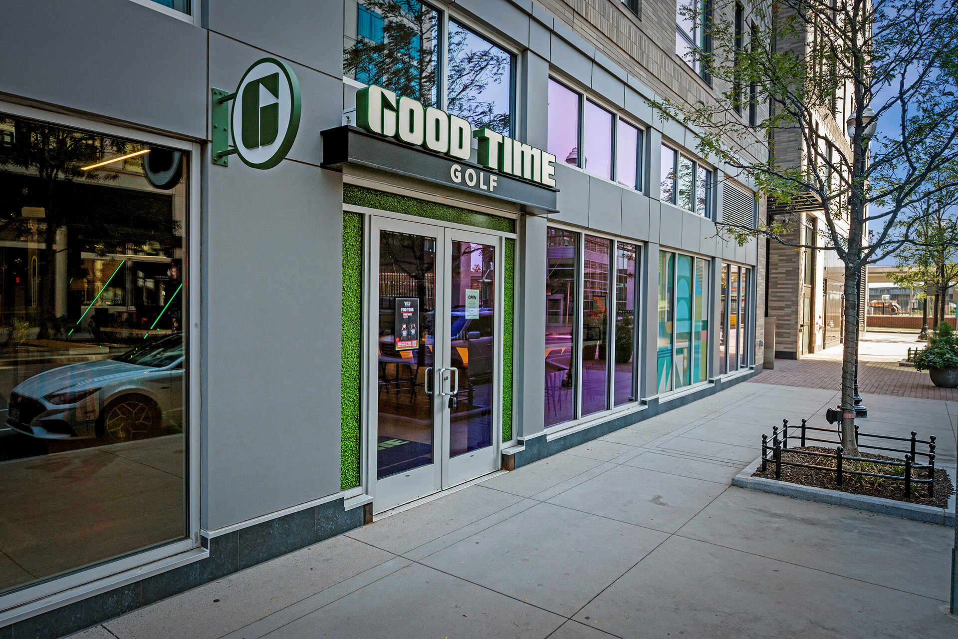 Three friends with a passion for golf set out to create a golf simulator bar and lounge at Assembly Row that captures the camaraderie of the beloved entertainment emporium they frequented growing up. The design artfully balances a playful nod to arcade neon while offering a more refined club aesthetic with leather furnishings. Their vision celebrates the site’s history, with Assembly Row now occupying the location where the iconic Good Time Emporium once welcomed Boston-area revelers, while it introduces a golf-focused venue for today’s urban crowd. Ebbrell Architecture + Design brought this concept to life with a design that pairs playful neon energy with the comfortable style of a neighborhood social club, offering six state-of-the-art simulators, a full bar, commercial kitchen, and stylish lounge areas.